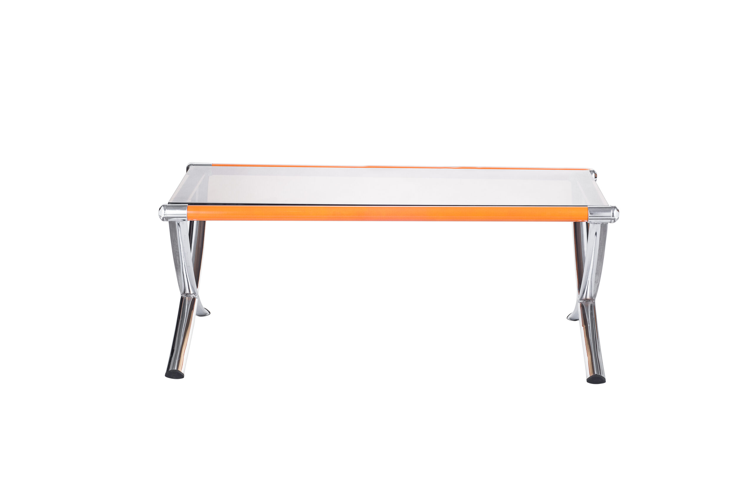 جلو مبلی اداری مدل سامان با طراحی شفاف و ترکیب فلز و شیشه، جلوهای مدرن و مینیمال به فضا میبخشد.